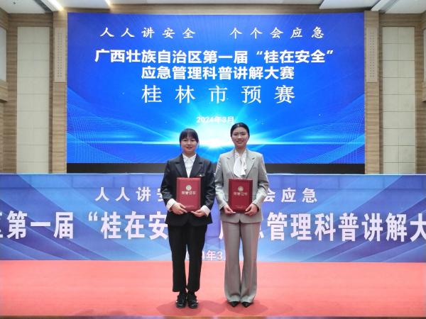 经过集团公司内部评选和市国资委推荐,集团公司下属鼎晟能源公司田明霞、机场路公司刘莎加入自治区第一届“桂在宁静”应急治理科普讲解大赛桂林市预赛,并从全市21名参赛选手中脱颖而出,均获得“十佳讲解员”称呼。