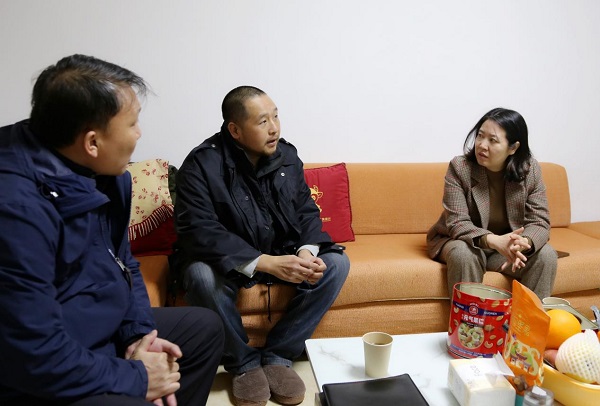 ▲陈静一行慰问困难职工秦斌