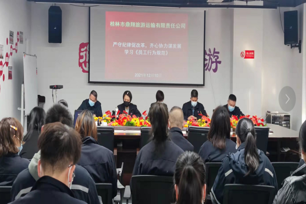 12月10日,鼎翔旅游召开全体治理人员集会,组织员工认真学习《员工行为规范》及相关文件,增强企业治理、增强制度建设。